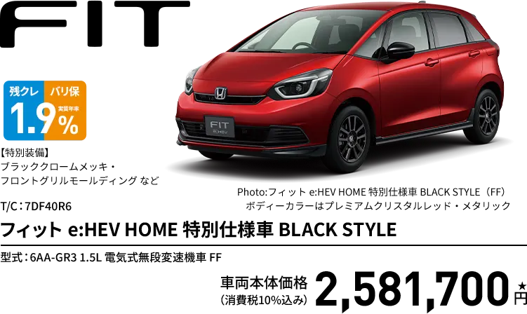 フィット e:HEV HOME 特別仕様車 BLACK STYLE(FF) ボディーカラー/有料色 メーカーオプションなし〈実質年率1.9%、60回(5年)払い〉