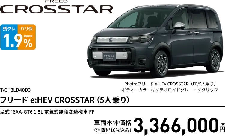 フリード e:HEV CROSSTAR(FF/5人乗り) ボディーカラー/有料色 メーカーオプションなし〈実質年率1.9%、60回(5年)払い〉