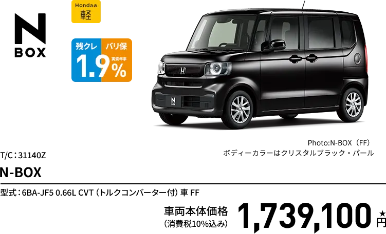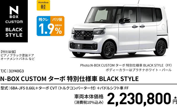 N-BOX CUSTOM ターボ 特別仕様車 BLACK STYLE(FF) ボディーカラー/有料色 メーカーオプションなし〈実質年率1.9%、60回(5年)払い〉