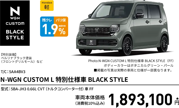 N-WGN CUSTOM L 特別仕様車 BLACK STYLE(FF) ボディーカラー/有料色 メーカーオプションなし〈実質年率1.9%、60回(5年)払い〉