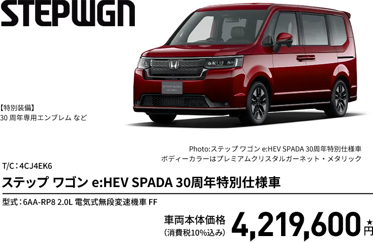 ステップ ワゴン e:HEV SPADA 30周年特別仕様車 ボディーカラー/有料色 メーカーオプションなし〈実質年率4.9%、60回(5年)払い〉