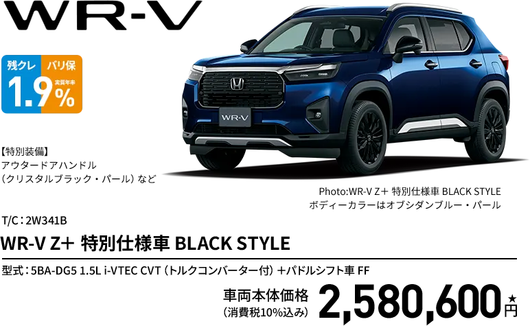 WR-V Z+ 特別仕様車 BLACK STYLE ボディーカラー/一般色 メーカーオプションなし〈実質年率1.9%、60回(5年)払い〉